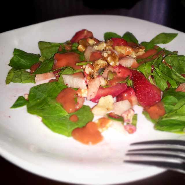 Sweet meets.... SPICY!!!! For those of you who know me I am a pretty simple, healthy eater...but the ONE thing I love more about food than those two things is SPICY!!!! I HEART SPICY!!!!! I used to eat grilled cheese at work...you know, as in the SCHOOL LUNCH grilled cheese??? The one that was OH SO YUMMY!!! The one that they used to smother with butter and then bake!? Yeah, that grilled cheese...the one I used to eat BEFORE I discovered that I CAN'T eat cheese?! Yeah, that one. Anyway, I was the girl the cafeteria staff died laughing at as I doused that yummy deliciousness with some HOT SAUCE (as in about 1/2 a bottle)!!! HELLO SPICY!!!! HELLO LOVE IN MY MOUTH!!!! ***Confession***To this day, I keep a bottle of hot sauce AND a bottle of sriracha in my fridge at work....YES.I. DO. I may not add hot sauce to everything, but I do add a little spice to just about every meal or snack :) THIS is the YUMMY #CleanEats salad that I made for lunch! Oh, and what's even better...